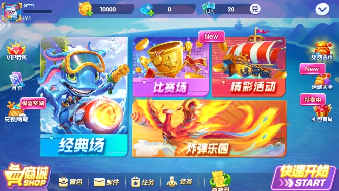 2、领取新手礼包,开启捕鱼体验