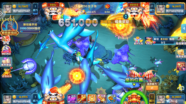 2、万炮房、千倍暴击、定屏、全屏炸弹等,让您体验壕的滋味!