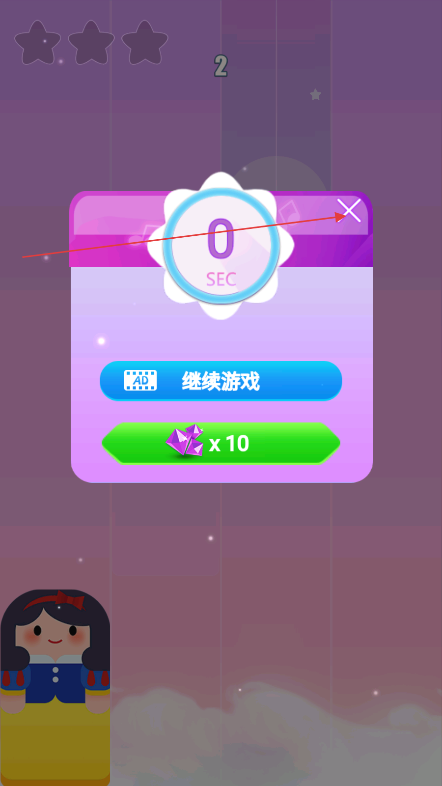 3、没有点击到方块,可点击右上角的叉,或花费钻石获取奖励继续游戏。