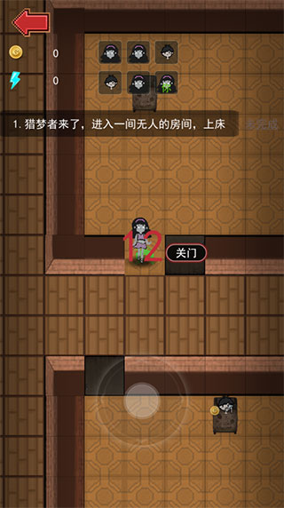 进入房间后立即点击关门按钮,阻断猎梦者第一时间闯入路径。