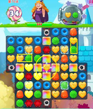 特殊图案组合可生成炸弹、彩虹球等强力道具