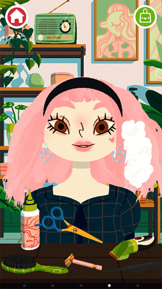 游戏没有复杂规则,一切从指尖触感开始。人物发丝会随动作轻盈飘动,用刀片梳子轻轻一推,就能让碎发服帖归位,下剪更精准。