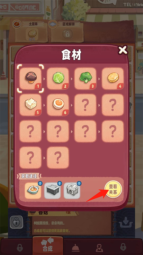 进入后选择【查看关系】,系统将完整展示该物品的所有合成路径与上游原料。