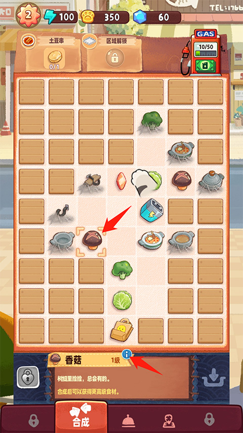 在合成界面选定任一食材或厨具,例如点击【香菇】旁的蓝色图标,即可进入该物品专属页面。