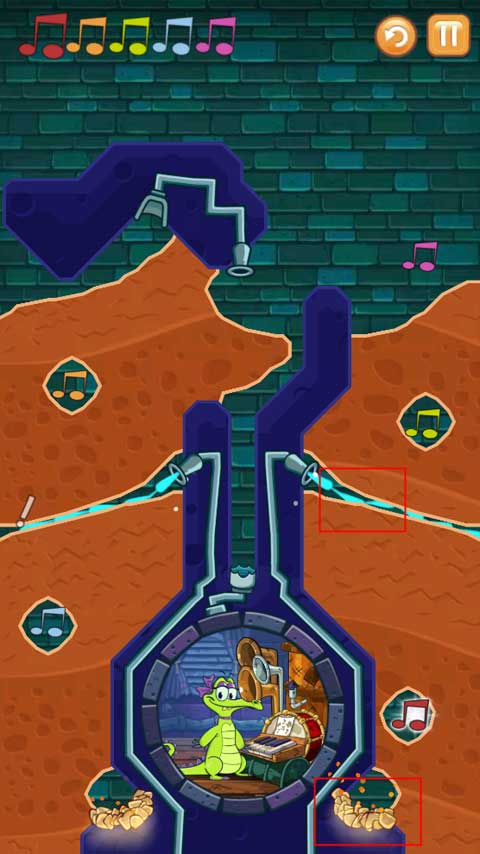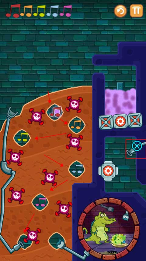 进入游戏后选择爱丽角色,此时仅显示“挑战”按钮,尚未开放她的专属关卡。想要开启这段旅程,需依次通关三道独特试炼:第一关要求将清水精准注入全部音符,同时确保小鳄鱼也能接收到洗澡用水;第二关则要操控受污染的水流完成同样任务,过程中必须避开随时可能引爆的炸弹;第三关转为蒸汽驱动,点燃柴火让水流化作升腾热气,托起所有音符抵达高处。每一步都考验对物理规律的理解与时机把控。
