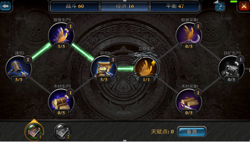 偏好和平发展或专注资源积累的玩家,可主修经济天赋。该路线显著加快木材、石料、铁矿、粮食等基础资源的采集速率与单次产量,尤其适合拥有小号协同运作的玩家,通过多线采集实现资源自给自足。