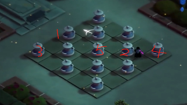 墓室中央七只茶壶按环形排列,壶盖纹路各不相同。唯有依循壶身釉色由浅至深的渐变顺序依次击打,茶水才会顺流汇入中央凹槽,开启通往内殿的暗门。