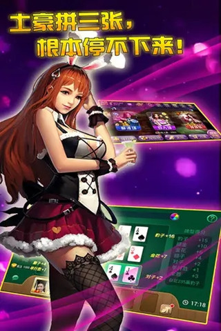 土豪拼三张旧版是一款融合经典扑克玩法与创新设计的手机游戏。玩家通过三张牌进行拼点对决,在简单规则中融入策略与技巧,与其他玩家展开竞技。游戏提供多种场次与丰富玩法,兼顾休闲娱乐与高分挑战的不同需求。清新简洁的界面搭配流畅操作,营造出沉浸式的游戏体验。玩家可随时随地与好友实时对战,并通过排行榜角逐荣誉,无论扑克高手或新手均能在此找到持久的乐趣。