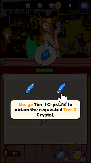 拖动同级水晶靠近融合,看微光跃动,听清脆回响,二级结晶悄然成形。