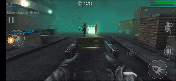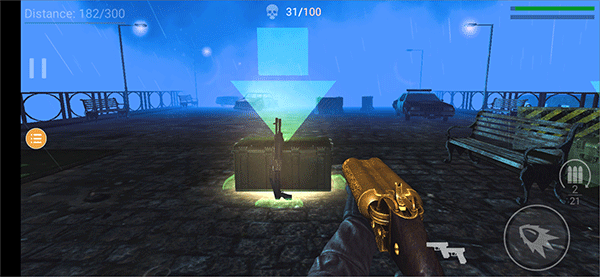 使用武器消灭来袭僵尸,若手枪弹药耗尽,可移动至地图中的补给点进行填充