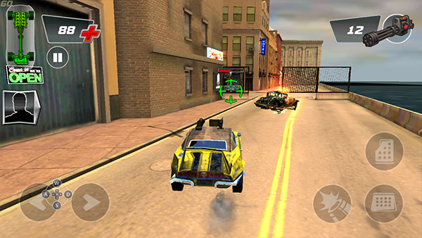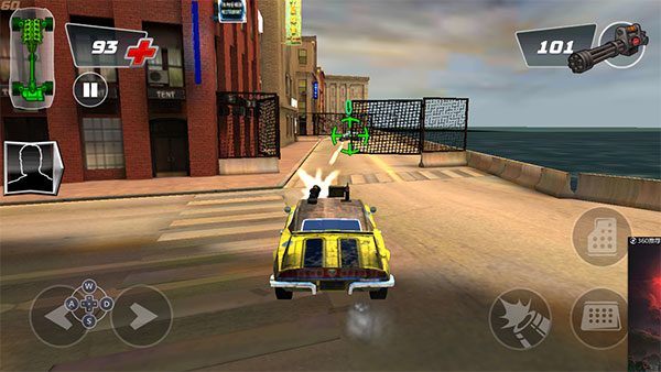 操作布局清晰,左侧控制方向,右侧集成油门、刹车与射击功能,便于快速上手。