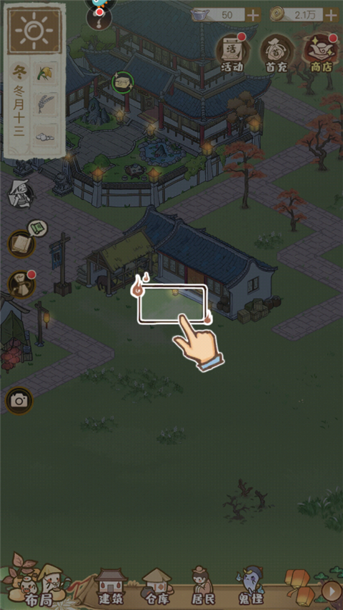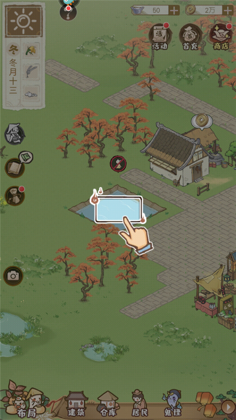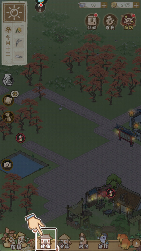 村庄建设从住宅开始,点击建筑界面开启建造流程。