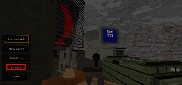 启动边境检察官游戏,在主菜单中找到倒数第二行的“Options”(设置)选项并点击进入。