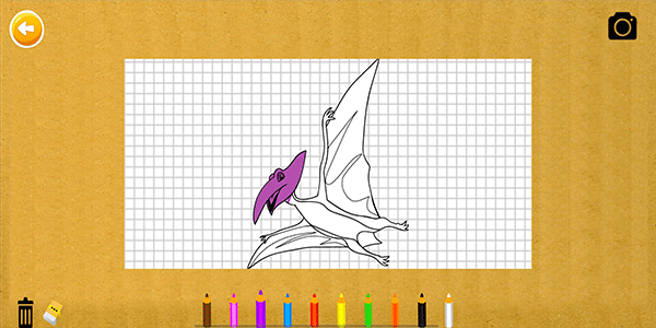 在【恐龙涂色】区域,孩子可自由为恐龙上色,完成后还能将作品保存留念,记录每一次创意表达。