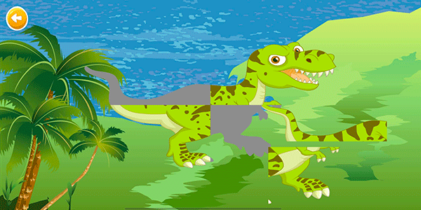 拼图过程中,恐龙图像被分割成若干碎片,玩家需将每一块拖拽至正确位置,最终还原完整恐龙形象。