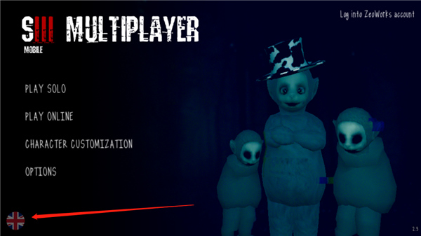 进入游戏主界面后,默认为英文显示,点击左下角的国旗图标;