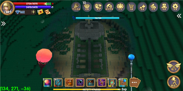 进入创造世界后,可直接飞往天空城。当坐标指示最后一项接近200时即抵达目的地。此处白天仅有小动物出没,夜晚则会出现各类强大怪物——不过在创造模式下几乎不会遭遇敌袭,因角色处于近乎无敌状态。