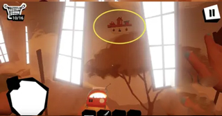 - 第六个玩偶挂在树上。向树干投掷石块,玩偶会因震动掉落。