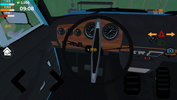 5、坐进车内后,将准星对准方向盘后方的钥匙孔,长按左上角“操作”按钮直至仪表盘启动(注意必须持续按住,直到引擎真正点火)。启动成功后,通过右下角的刹车与油门控制车辆行驶。