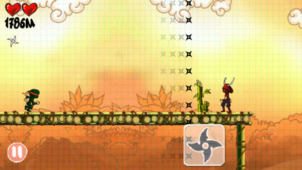 连续点击两次屏幕,忍者将跃向更高处,适用于跨越断崖或躲避低空障碍。