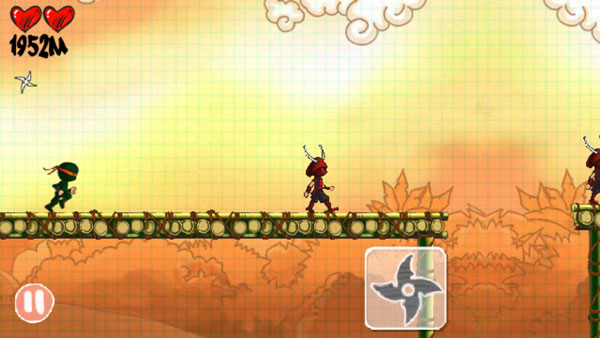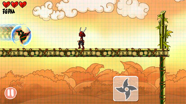 向左或向右滑动屏幕,忍者立即进入疾驰状态,短时间内大幅提升移动速度。