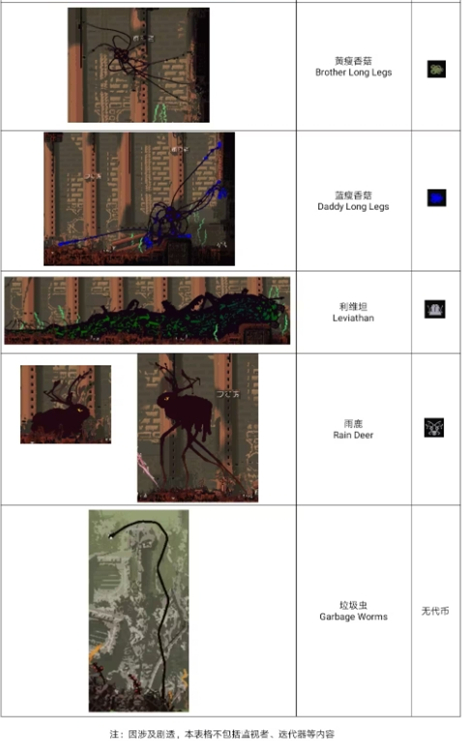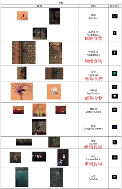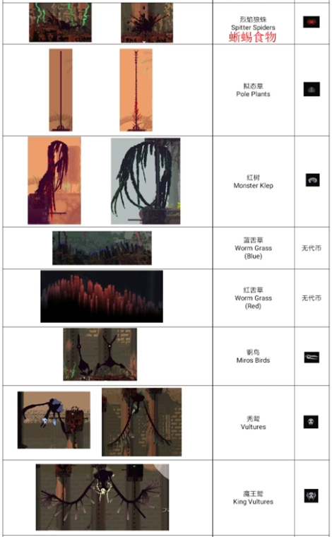 蛋虫与抱卵虫击杀后掉落可食虫卵,落网虫由其进化而来,悬于天花板发动突袭,首击不致命,反身补刀即可,但心理压力巨大。