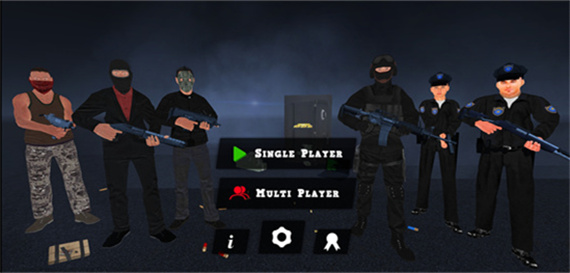 下载安装后直接进入主界面,阵营选择即刻开启截然不同的游戏人生——选警察,你手握执法权与战术装备;选强盗,你掌握潜行路线与爆破时机。角色操控简洁直观,奔跑、跳跃、蹲伏一气呵成,右上角武器轮盘支持快速切换,手枪、霰弹、步枪随战况即时调用。
