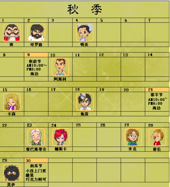 牧场物语精灵驿站最新全汉化版节日表
