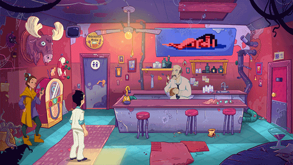 三十多处手绘场地各具呼吸感,从昏暗酒吧的琥珀灯光,到宾馆走廊地毯的磨损纹路,每一帧皆可细读
