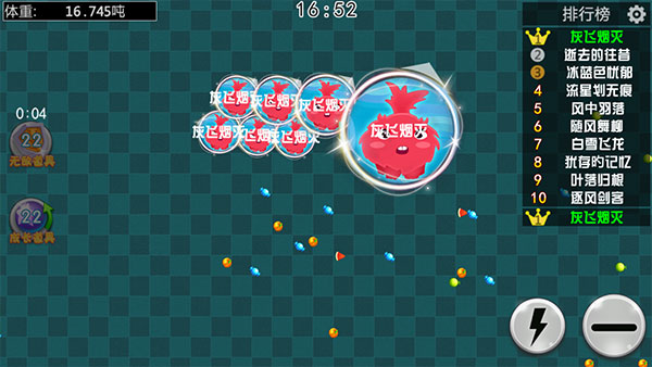 找准时机分裂突袭,绕后包抄,利用惯性撞击,用熟练的操作把对手一个个收入囊中。