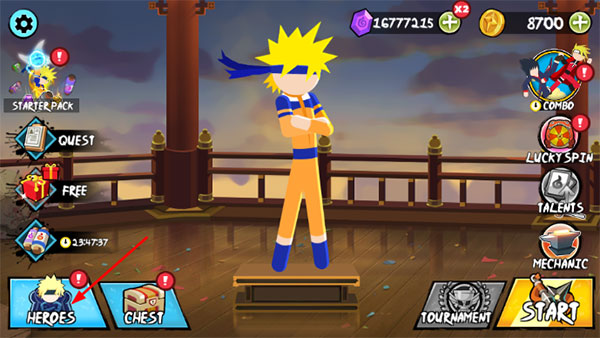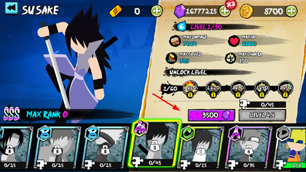 火柴人忍者大战官方正版怎么查看升级角色属性