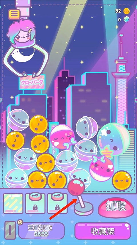 画面下方铺开一排排圆润饱满的扭蛋,左右轻推摇杆,爪子便随着指尖移动,在玻璃罩内缓缓滑行,影子落在彩纸底衬上,像在跳一支安静的舞。