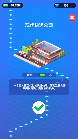 我快递送的贼快中文版是一款主打物流经营与放置养成的手游,英文原名Idle Courier Tycoon。玩家将从一家小型快递站起步,逐步扩建分拣中心、添置运输车辆、优化配送路线,并雇佣更多员工来应对不断增长的订单量。随着业务扩张,你可解锁智能分拣系统、冷链专线或跨境物流模块,让包裹流转更精准高效。每笔派件成功都会带来稳定收益,这些资金又能反哺设备升级与网点铺设。