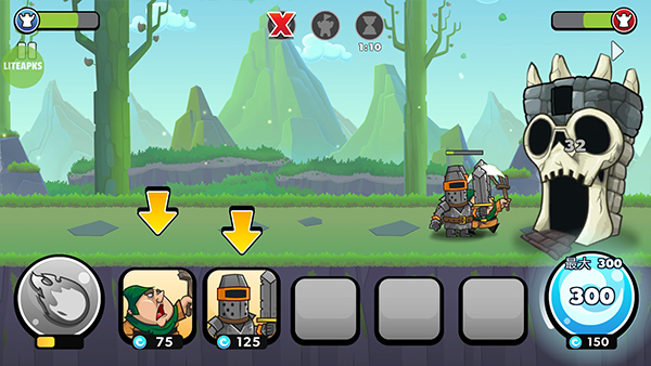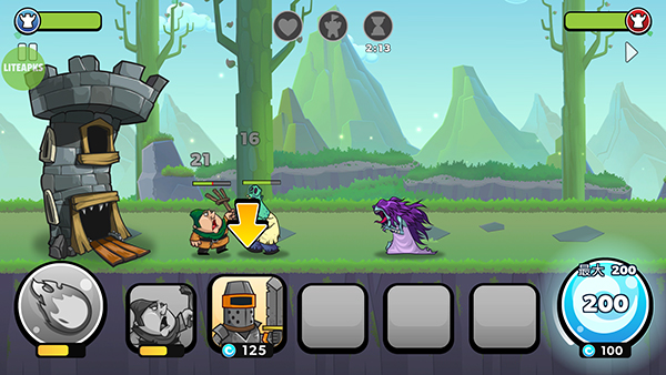 击败敌方部队,摧毁其高塔,赢取丰厚金币奖励。