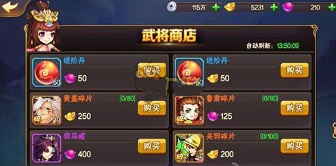 武将商店提供直接购买选项,使用元宝即可兑换进阶丹,适合资源充裕的玩家快速补充所需材料。