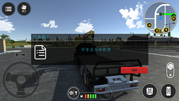 依照右上角小地图指示的路线,将满载货物的车辆安全驶向卸货点。