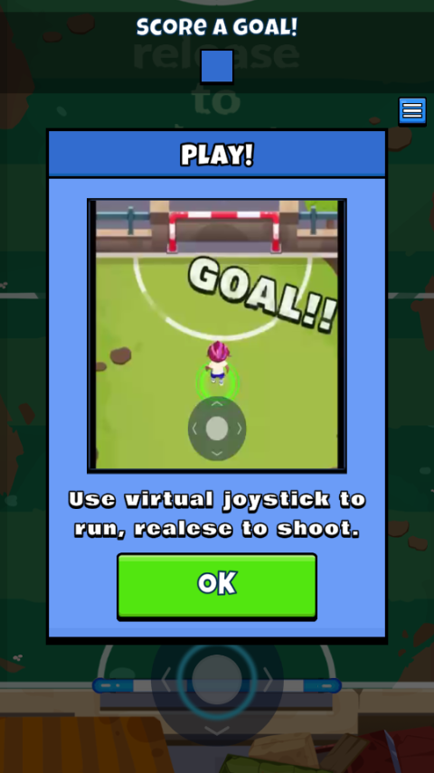 进入游戏后,初始关卡会引导你熟悉基础操作,只需使用虚拟摇杆控制角色移动,将球射入球门即可顺利通关。