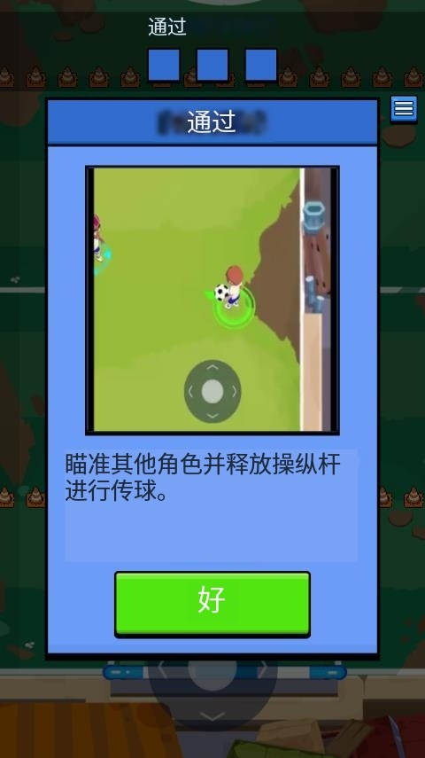 第三关则考验你的传球能力,需瞄准队友并释放操作杆完成三次以上成功传递才算过关。
