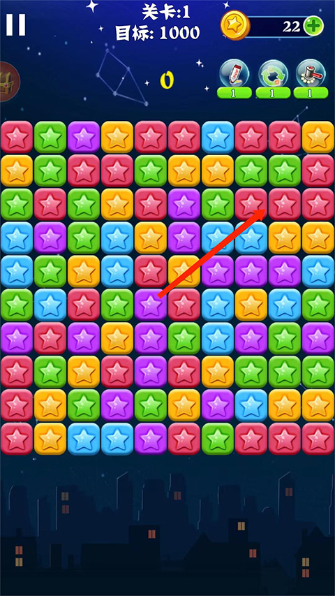 在游戏界面中,找到两颗或更多颜色相同且相邻的星星,点击即可消除并获得相应分数,