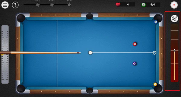 触摸屏幕调整击球方向,拖动右侧力度条控制出杆力量,松手完成击球。