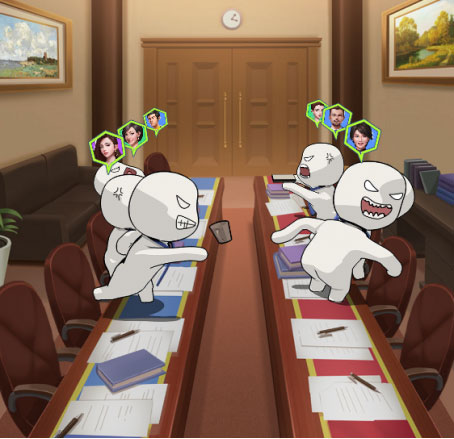 谈判采用对位比拼机制,双方人才按位置一对一较量,能力值高者胜出。前期为3V3阵容,后期升级为5V5。整场胜利取决于获胜人数是否占优,因此可借鉴“田忌赛马”思路,战略性放弃部分位置,集中优势赢得关键对决。
