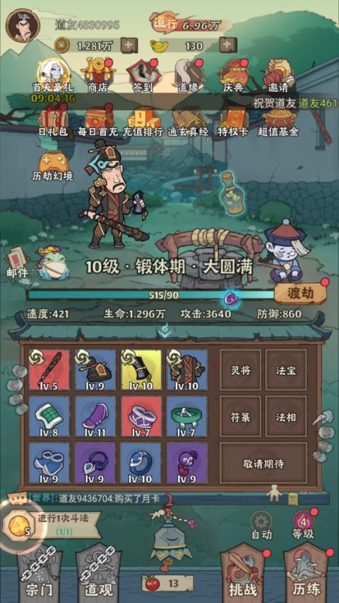 除了常规的探险与战斗,游戏还加入了开宝箱、角色养成、宠物孵化等多重玩法,构建出一个层次丰富、节奏轻松又不失策略深度的修道世界。