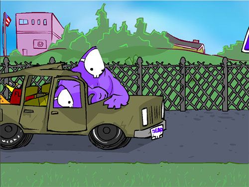 游戏开场便是大力士老爸开车送儿子到幼儿园,一场混乱即将上演