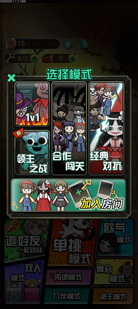 安装游戏后,进入主界面选择“入伙模式”即可开启联机匹配。系统会自动寻找其他玩家组成队伍,匹配成功后挑选适合的技能进入战场。随后便可与队友协同作战,共同抵御猛鬼或展开阵营对抗,体验多人互动带来的策略乐趣。