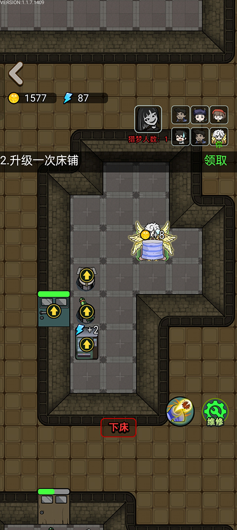 每局游戏包含1名猛鬼与6名人类玩家,可自由选择阵营。作为人类,开局建议优先占据位置较隐蔽的房间,尤其推荐上方区域,便于观察全局动向。战斗中可通过门上的血条直观判断猛鬼攻击强度,据此决定是否升级门防。早期务必尽快提升炮台等级,否则难以对猛鬼形成有效压制。若门锁受损,及时维修可恢复防御能力,避免被快速突破。当床铺升至一定等级后,前往蜜獾商店购买游戏机以获取电力,这是后续升级不可或缺的关键资源。