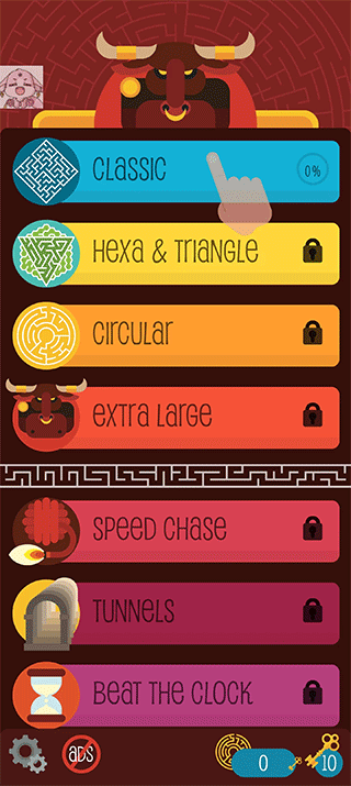 游戏提供三种不同颜色主题的简约复古2D视觉风格,展现丰富多变的迷宫形态、尺寸与玩法模式。