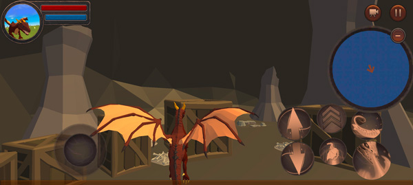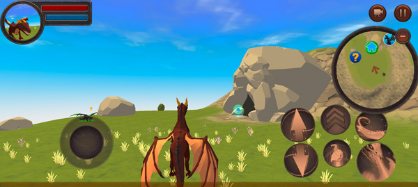 进入游戏世界后,左下角区域用于控制巨龙自由移动,右下角设有近战、远程、加速和飞翔等功能按键,其中加速需配合左侧移动方向使用,实现高速冲刺。