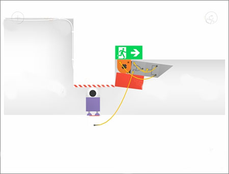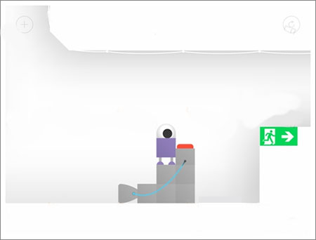 将砖块按图示方式堆叠,使其略微横跨出台阶边缘。下落过程中持续向右移动,即可安全抵达出口。