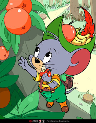 进入猫鼠世界后,罗宾汉泰菲依旧头戴标志性的绿色帽子,红色树叶随风轻扬,圆润可爱的身形搭配婴儿肥的脸颊,萌态十足。尽管还穿着尿布,但那双灵动的眼睛透露出他绝非普通小鼠,机敏与智慧藏于其中。