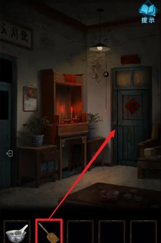 使用【香灰铲】清理右前方门缝,打开门进入院子。